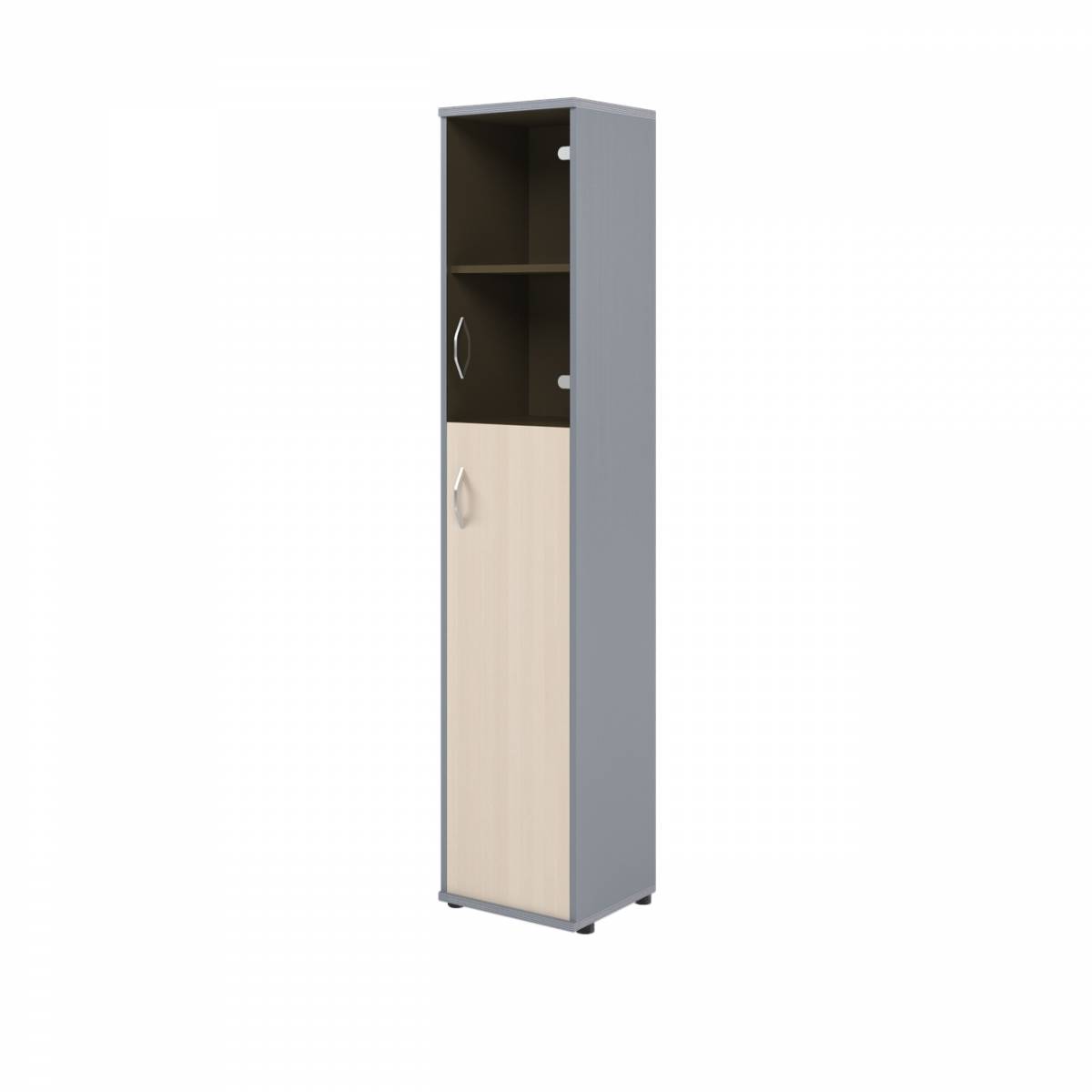 Шкаф колонка с малой глухой и стеклянной дверьми СУ-1.4(R) Клен/Металлик 406*365*1975